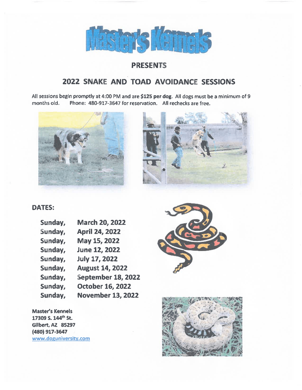 If you live in a desert area, or hike or camp with your dog, this course is for you. Any dog, regardless of breed can take this course. They need to be at least 9 months old.