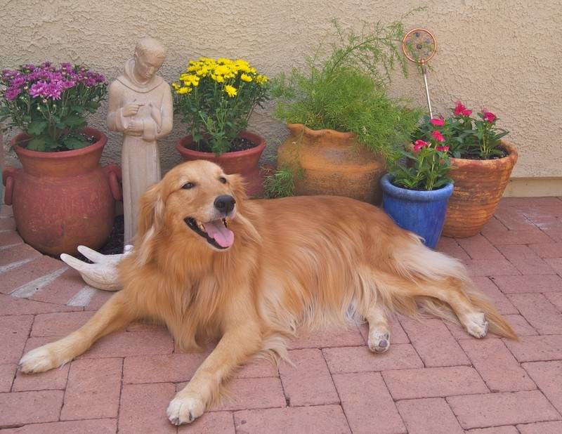 CJ joined our family a little over two years ago. We adopted her sight unseen after hearing her story. You see, this little girl at the age of 11 months was turned into Rescue a Golden because of her health issues. Vets estimated she would only live to age of two…but you will see she had her own ideas about this. She joined a lovely foster family for several years and when they had to move out of state, we joyfully adopted her. Her exercise was limited and she was on a very strict diet but to look at her, no one ever thought she was ill. Rescue a Golden called her a “special needs” dog…to us, she was just plain special. Every day she was with us was sweet and joyful. She “sang” with joy when my husband walked in from work, she “sang” with excitement when playing with the rest of the pack, and she “sang” when the pancakes came off of the griddle and landed into her dish. She taught us that every day brought something to sing about.