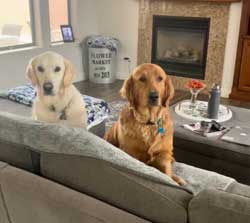 Meg fit right into our family instantly! She met her new sister, Maisey, on the front lawn. Five minutes later they were wrestling in the back yard like they’d been lifelong friends. Of course, a good wrestling match leads to a nice nap next to each other. Maisey, also a RAG rescue, didn’t have much interest in her chew toys before Meg came along. Now they find ways to distract each other and steal things away. Walks became more interesting with these two crazy ladies who want to smell everything, but never in the same direction at the same time. We did discover Meg has an eye issue, and she has been such a good girl while getting her drops. She is a big ball of mushy love who can’t sit up very long when being pet. She’ll slowly close her eyes and drift off while sliding down to the ground. Meg and Maisey are never very far from each other and still love wrestling and chewing on each others ears and paws. They really are living the good life, and we feel so much love and joy with both of them around us. I’m so glad I finally decided we were ready for a second pup, and Meg is the perfect addition to our family!